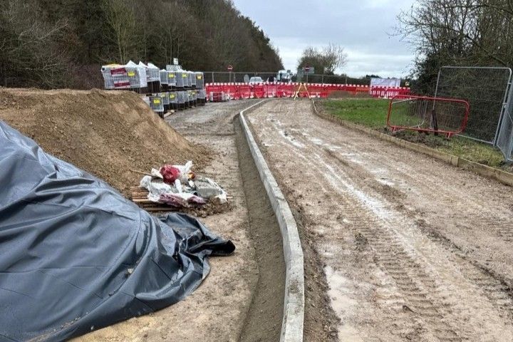 Kerbs and edging are now being installed along the B4022. This ensures clear marking of the boundary between the footpath and the carriageway. The project ensures that both the footpath and the road will offer a safe and accessible environment for all members of the community.